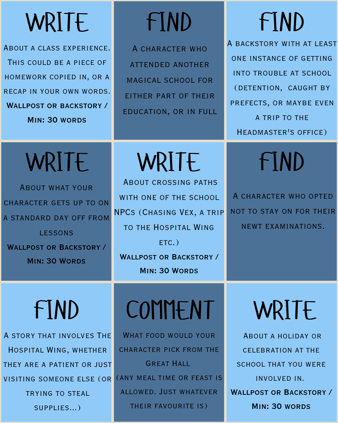 Welcome back to the second round of Backstory Bingo!